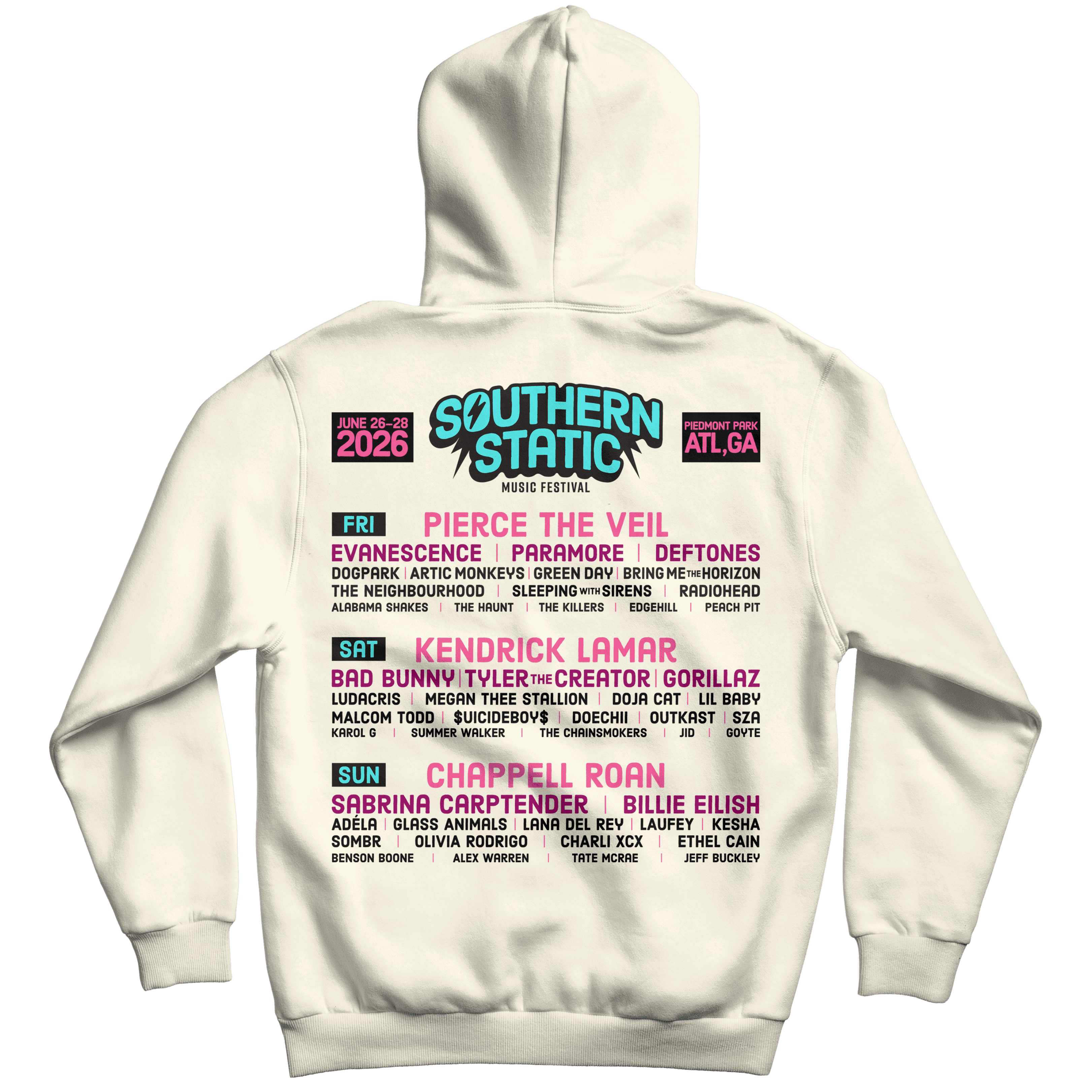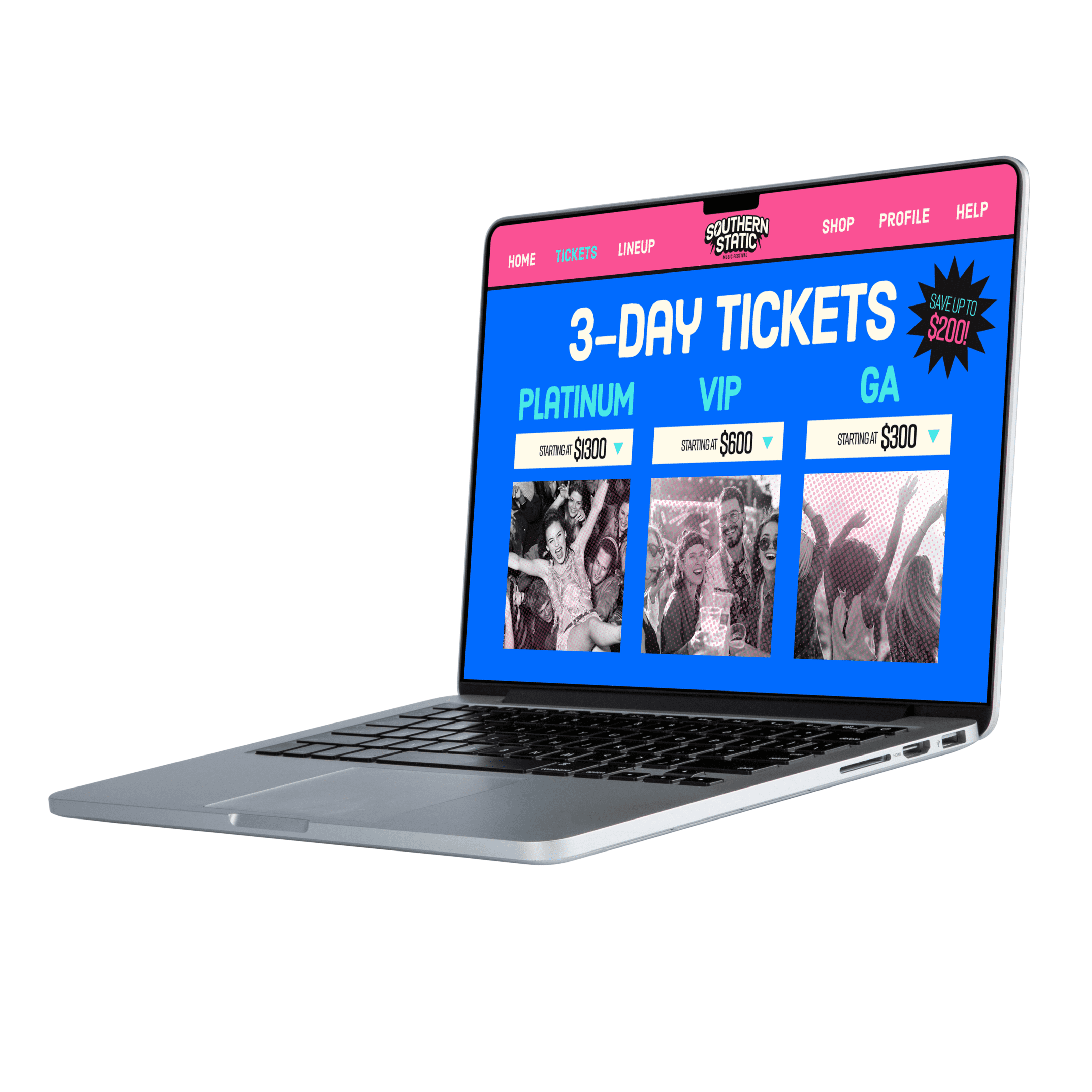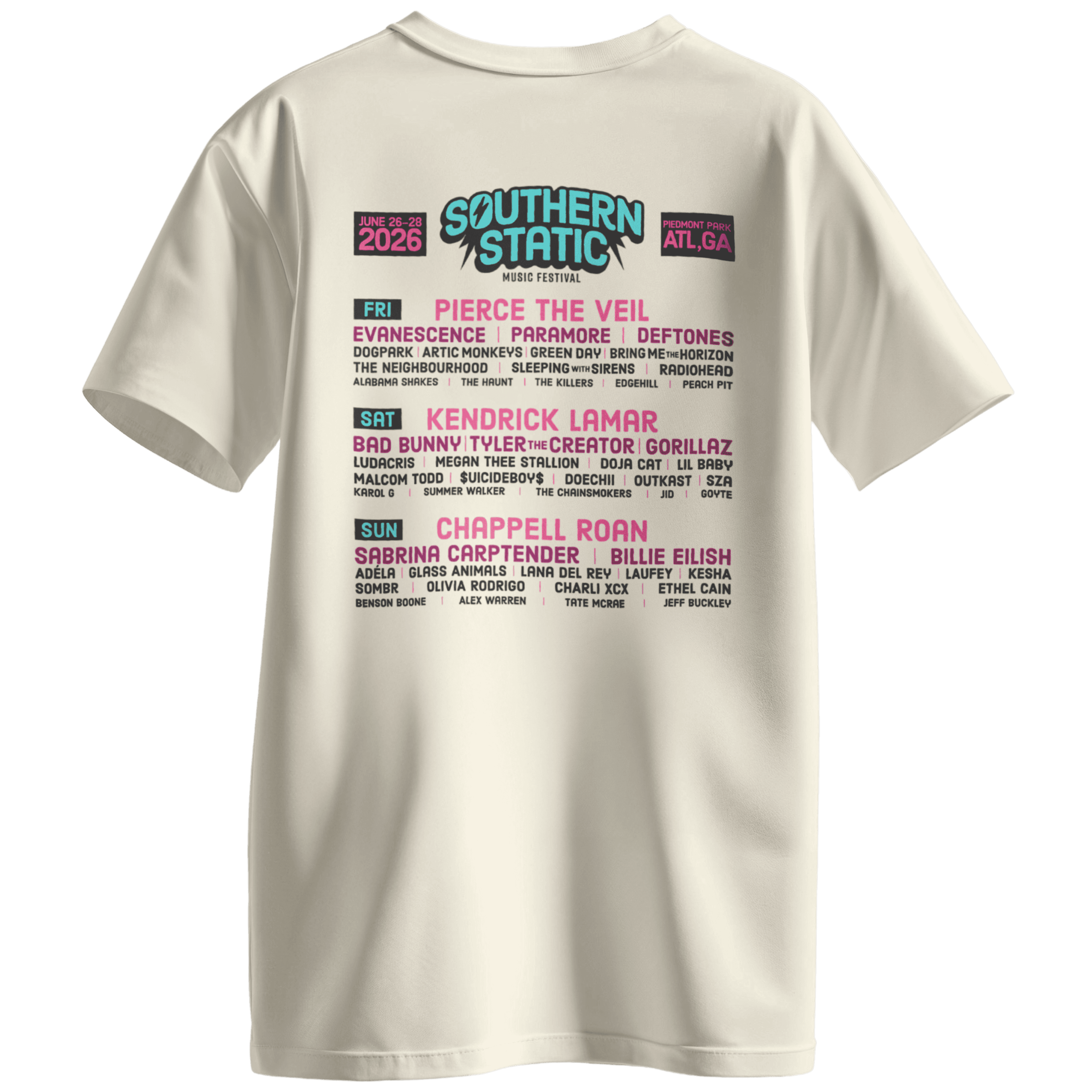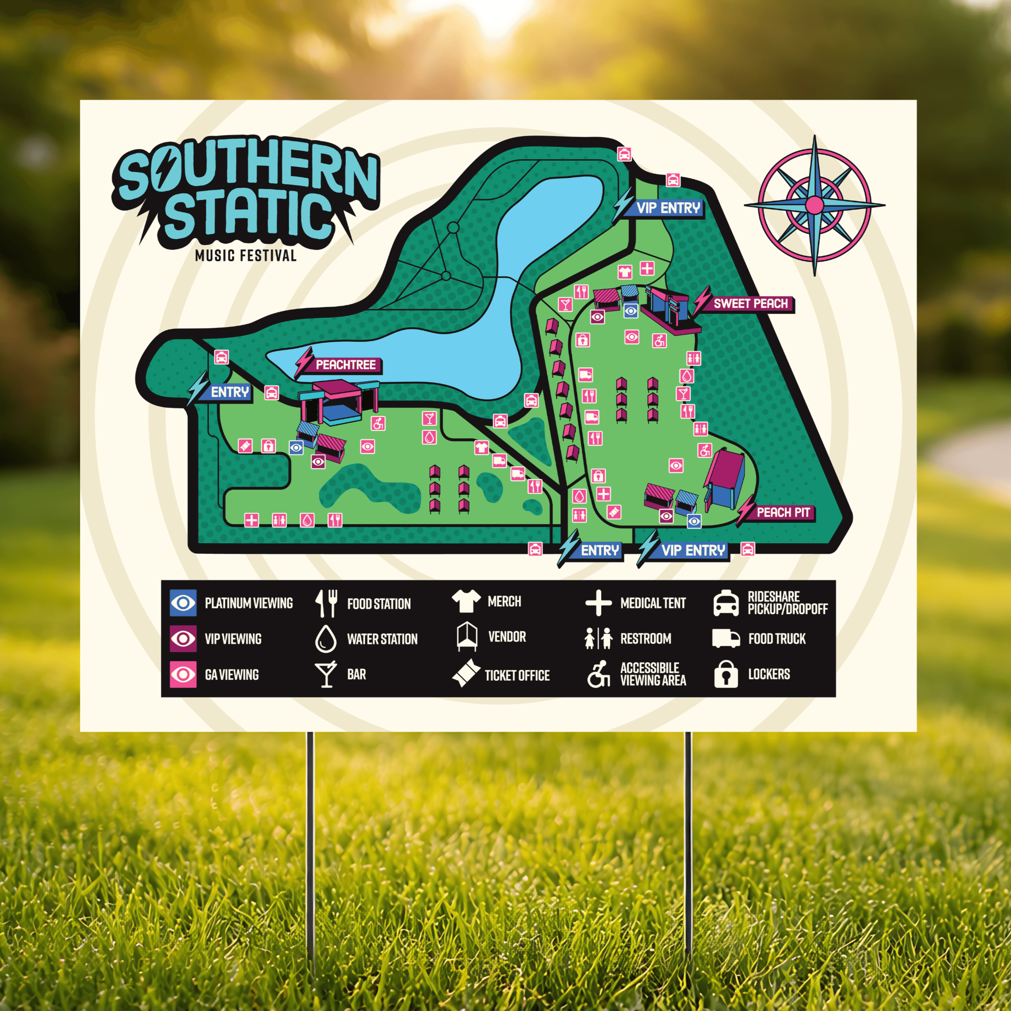 For this project, the goal was to create an original brand and/or product. I chose to create Southern Static, a three-day, outdoor music festival located at Piedmont Park in Atlanta, Georgia. Southern Static's branding is bold, energetic, and colorful, with a main focus on bright colors and graphics. For the deliverables, I created Social Media graphics (1 Carousel, 5 Individual, 2 IG Stories), Print materials (Advertisements, Festival Map, and Merchandise), Packaging designs (Wristband, lanyards and badges), UI/UX (Website and App prototype), and a 3D model and print of one of the festival stages.